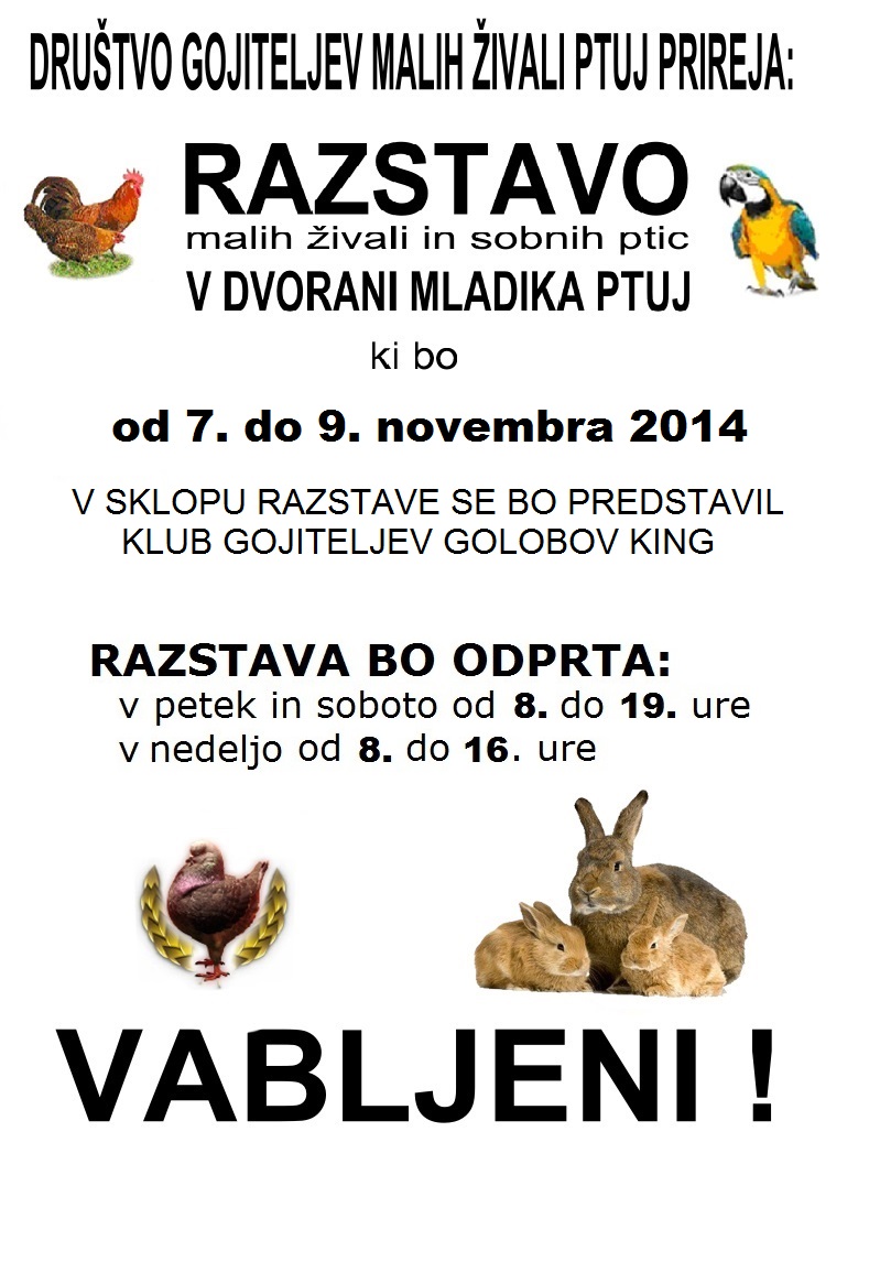 Letos smo kot KING KLUB SLOVENIJE ponovno vabljeni na RAZSTAVO MALIH ŽIVALI IN SOBNIH PTIC v dvorani Mladika Ptuj,