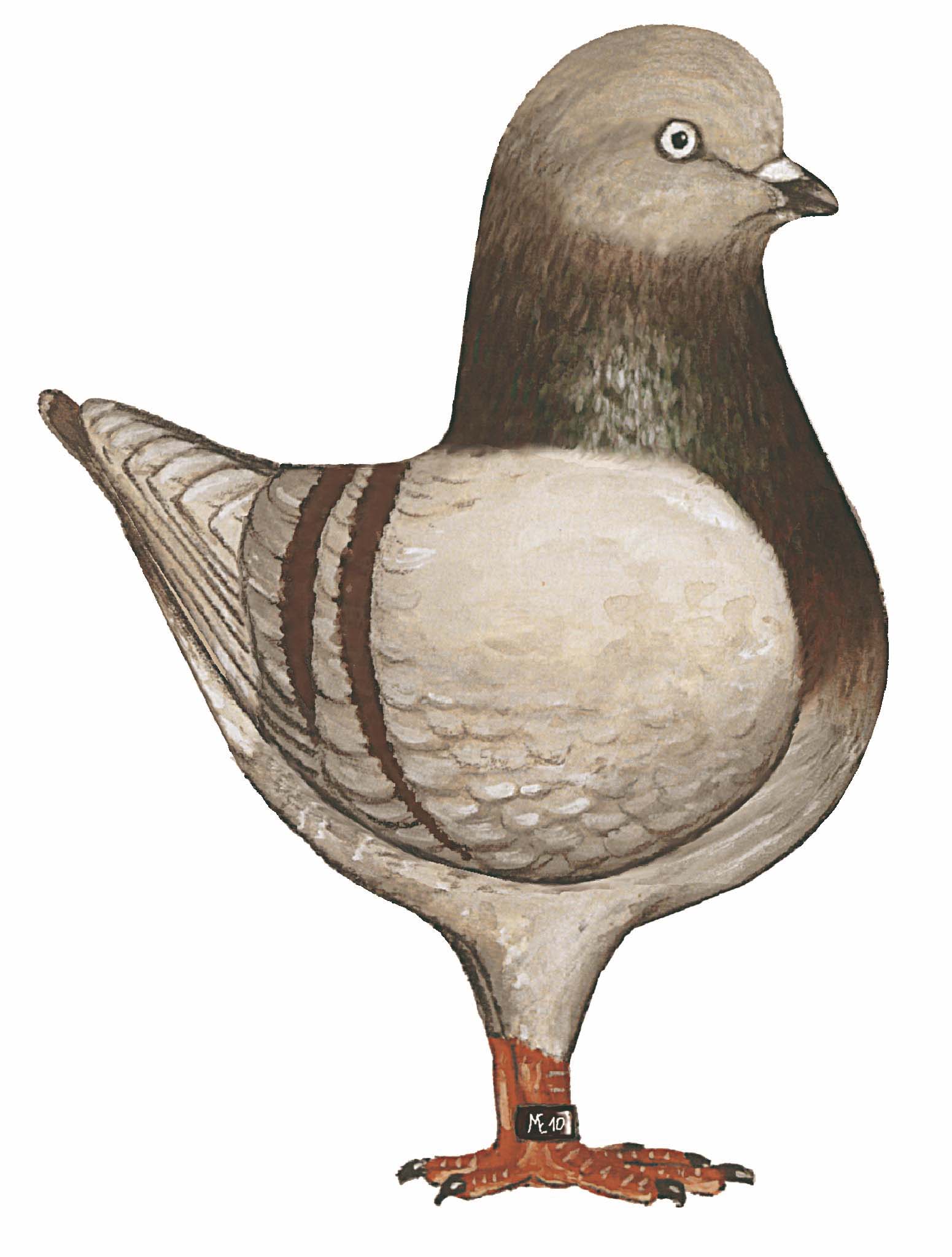 srebrno siva barva na krilih, podvezice na krilih in repni rob sta čokoladno rjava. Rjavo pepelasti (bledo rjavi-Braunfahl) imajo čisto srebrno sivo barvo na krilih, letalna peresa so pepelasta, telesna barva je nekoliko temnejša, vrat ima zelenkast sijaj. |