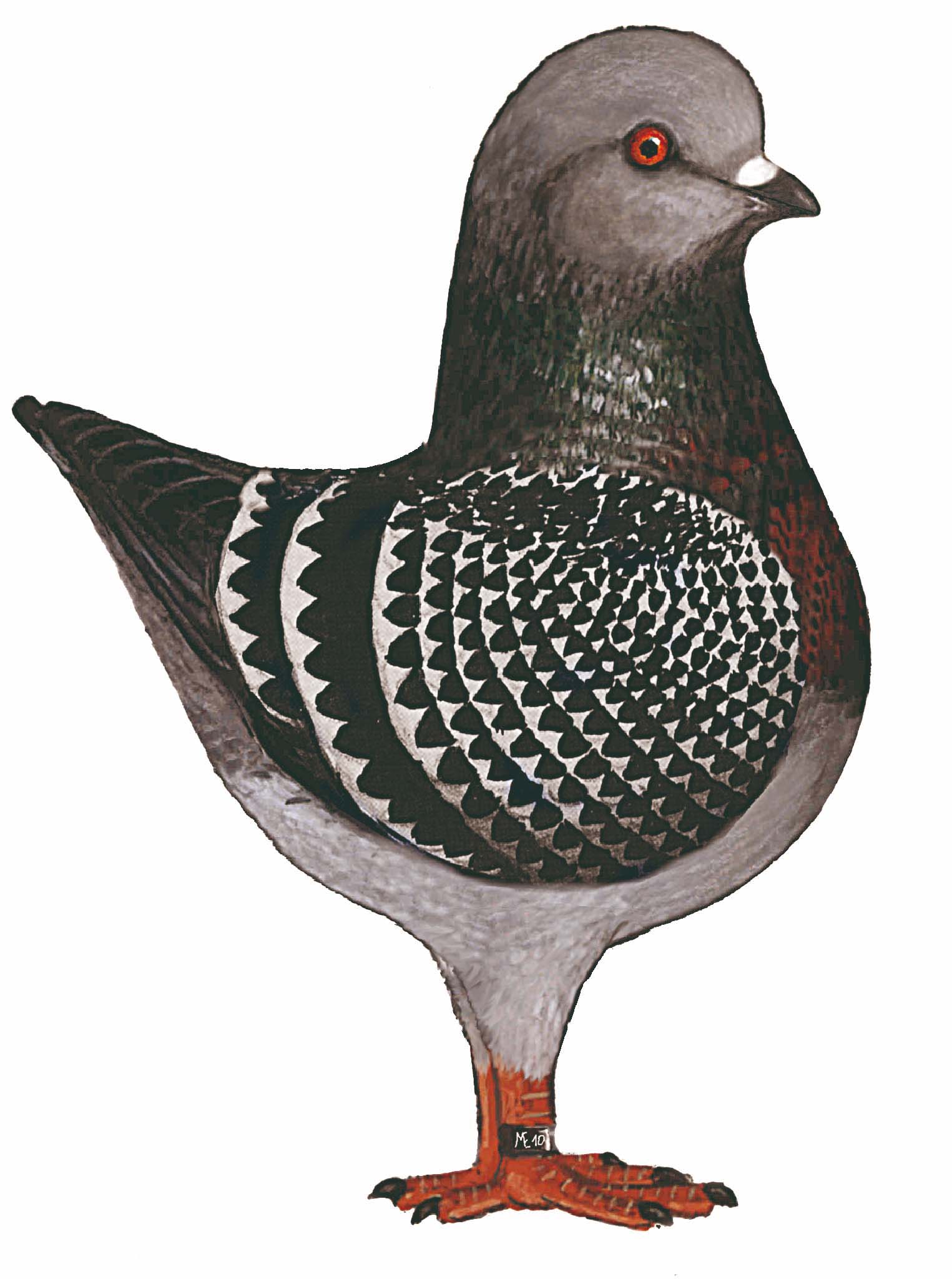 osnovna barva je temno modra, zlasti po vratu in glavi. Krilo mora imeti gladko črno ploščo – črna nakovala. Po hrbtu je bel, krila in konica repa sta črna. Po vratu ima bleščeče kovinsko zeleno barvo. Paziti je treba zlasti na osnovno modro na ščitu. Preveč temne barve je napaka.