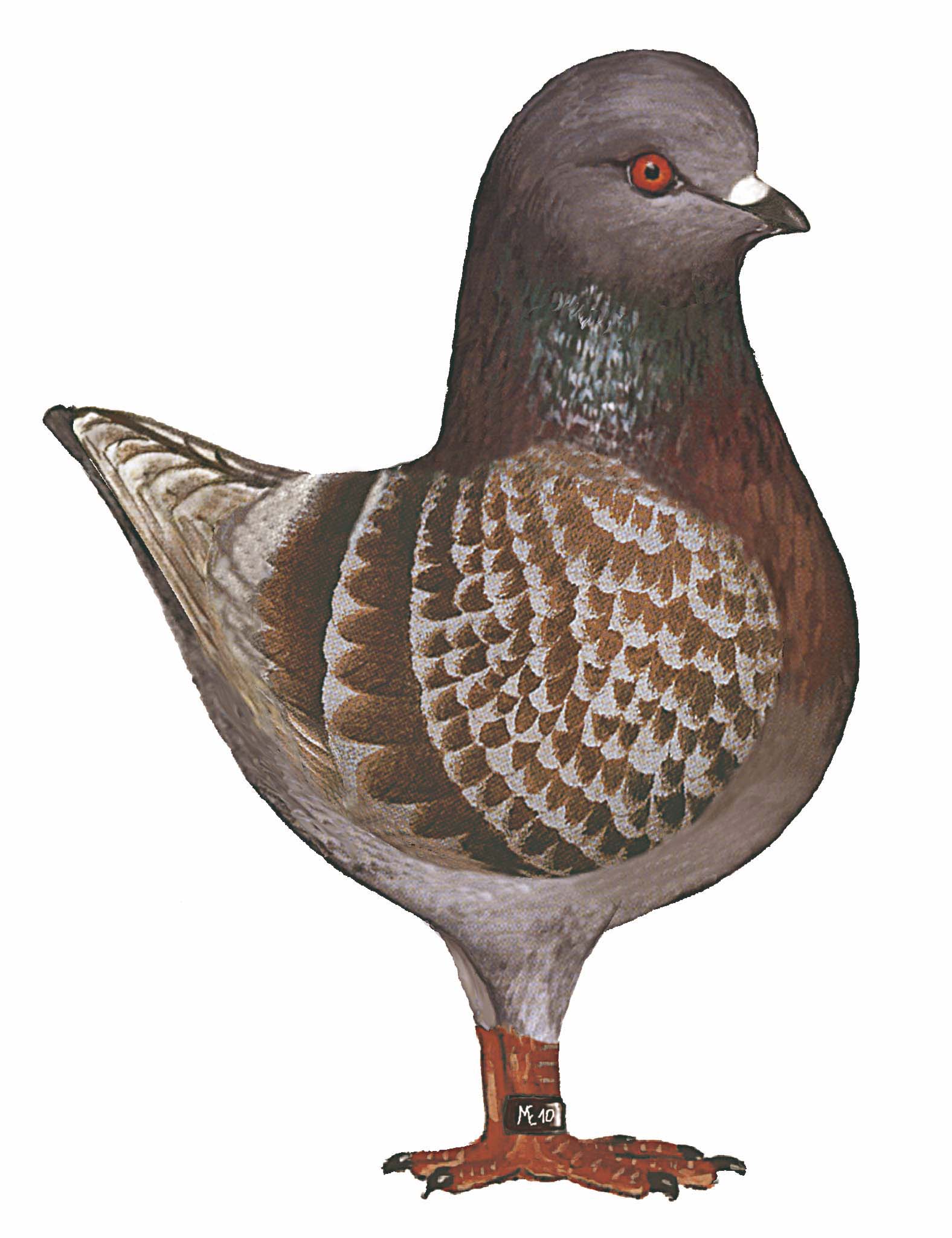 povsod je jekleno siva barva. Vrat ima temnejšo nianso z metalno zelenkastim sijajem. Sem štejemo t. i. pegaste s T-vzorci enobarvni in žametni T–vzorci. Pege, ki so barve rje, se morajo raztezati po celotnem krilnem pokrovu. Pegavosti ni na prsih in na mečih. Repna proga manjka. Jekleno siva barva je zaželena na trtici, je pa dovoljena tudi svetlo siva. Indigo kovani homocigotni king je izredno podoben bledo rdeče kovanemu, vendar prvi omenjeni ima lahko rahlo modrikasto barvo okoli glave in repa. Osnovna barva pri tej pasmi je temnejša kot pri indigo kingu s podvezicami. |
